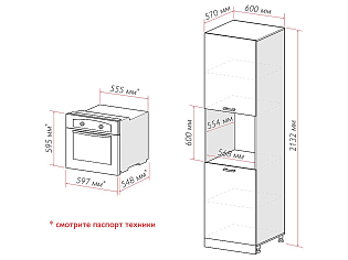 Шкаф пенал с 2-мя дверцами под технику Евро (2132х600х574)