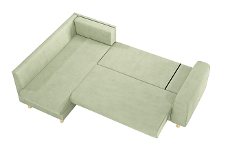 Купили диван угловой в зал, комната преобразилась сразу же, цвет очень удачный. Материал велюр, надеюсь прослужит долго. Удобные сиденья и спинка, в меру мягкий, лежать и сидеть очень комфортно. Раскладывается легко, спальное место просторное, как полноценная 2х-спальная кровать. Сбоку вместительный выдвижной ящик-поместились все игрушки ребенка. Спасибо, вся семья довольна покупкой.