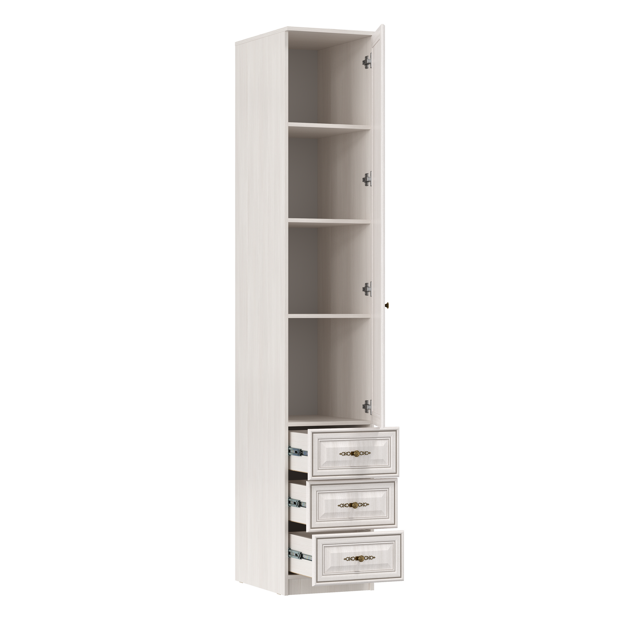 Шкаф - пенал 06.25 - 03 «Габриэлла» вудлайн кремовый совмещает благородную привлекательную эстетику с практичностью и хорошим функционалом. Продуманный дизайн уместно дополнит созданный интерьер и органично впишется в любое помещение.